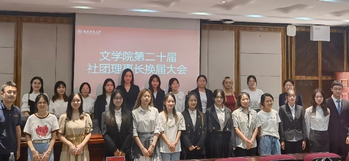 (通讯员 唐婉玲 洪健挺)9月15日中午,文学院第二十届学生社团管理服务中心在文渊楼216教室举行社团理事长换届大会。文学院党委副书记刘宓蜜与19级辅导员、学社管指导老师丛杨受邀出席,各社团换届相关人员、学社管各部门负责人及工作人员参加。