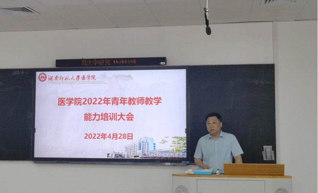 (通讯员 文泓 曾月槟 陈禾)4月28日下午,由医学院教务办举办的第二十二届青年教师课堂教学竞赛于综合楼403顺利开展。学院党委、行政、工会高度重视此次活动,院长何祖平、党委书记鄢朝晖、副院长李玉飞、工会主席袁仕善亲临现场指导,李玉飞主持此次活动。各系主要负责人担任此次竞赛专家评审,学院部分师生参与此次活动。