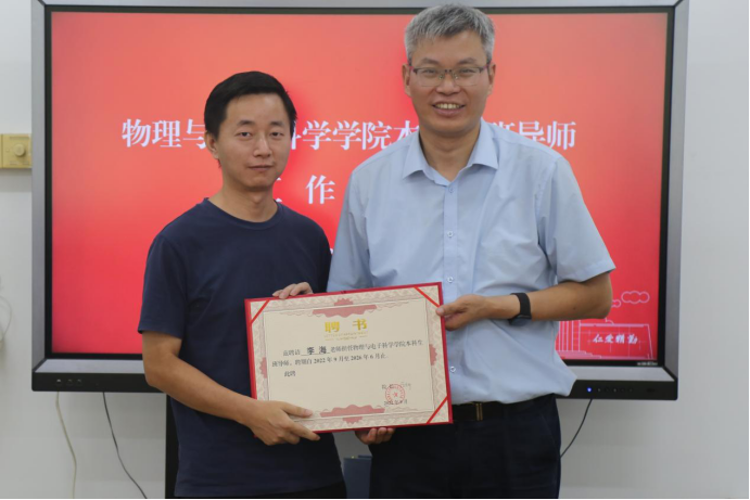 院长唐东升为班导师李海颁发聘书