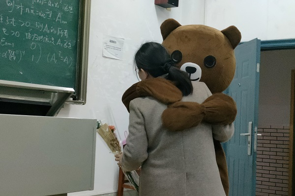 志愿者们为教师送上拥抱