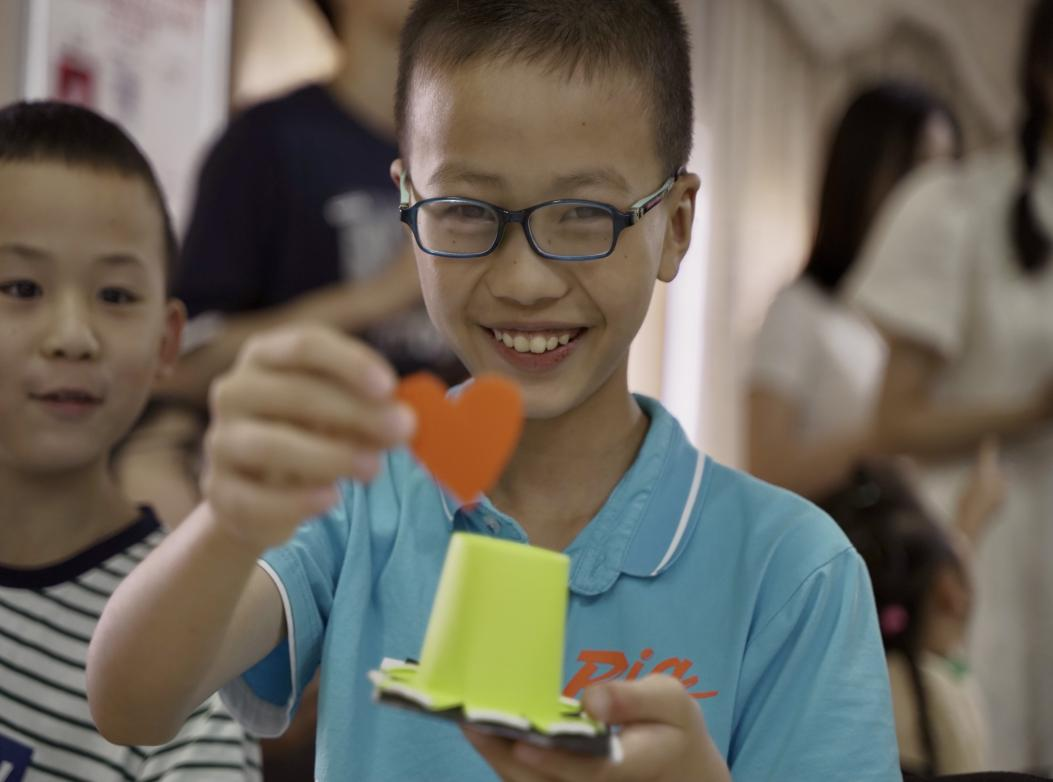 在摄影课上,团队成员首先向小朋友们介绍了照相机的基本构成部分与不同功能,让小朋友们了解到照相机也可以“说话”,能够定格许多美好的瞬间。之后在团队成员的引导下,孩子们使用卡纸等材料自己动手制作属于自己的“照相机”。团队成员为小朋友们分发了卡纸、图贴、安全剪刀、胶水等工具,在团队成员的指导与帮助下,每一位小朋友们都安全有序地制作出了属于自己的精美“照相机”。看着自己手中的照相机模型,孩子们的脸上纷纷露出灿烂的笑容。