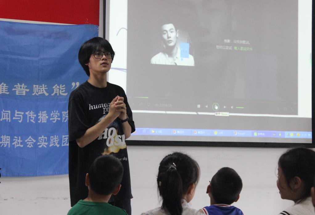 (通讯员 张君瑞 刘腾 徐喆璐 袁恬钰 葛嘉竹)7月5日,我校新闻与传播学院“同音筑梦,推普赋能”赴张家界市永定区社会实践团队到达张家界市永定区,于崇文街道宝塔岗社区开展第四次暑期实践活动——“趣味声乐与摄影课堂”。实践团队成员们利用自身专业优势,结合亲身制作原创歌曲与各类纪录片的经验,尝试为孩子们带来一节妙趣横生的活动课。