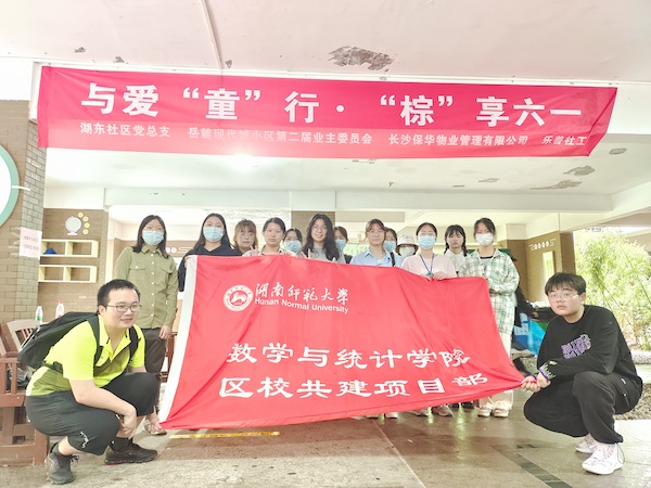 (通讯员 李可雯 陈佳鑫 匡家慧)为庆祝六一儿童节和端午节,增加社区居民的幸福感,5月29日上午,数学与统计学院区校共建项目部(以下简称“区建部”)于望月湖小区湖东社区(以下简称“湖东社区”)开展“与‘爱’童行,‘粽’享六一”系列志愿活动。数统院24名志愿者参与此次活动。