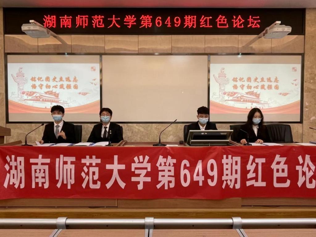(通讯员 刘毓雄 董小艳)4月14日中午,为提高大学生思想觉悟,增强理想信念,历史文化学院团委宣传部在203学术报告厅举办了以“铭记团史立远志,恪守初心筑强国”为主题的红色论坛。本次论坛采用现场直播、线上会议的形式,历文院党委副书记马欣,副教授向常水,团委书记陈卓君,学工办老师周冲、李青和全体2021级本科生线上参加论坛。