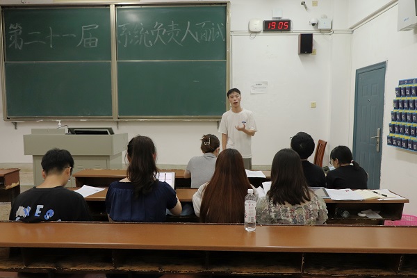 数统院各系统负责人的竞选者轮流面试答辩,他们就学生工作经历陈述了自身的工作经验与能力。在提问环节中,面试官着重考察了竞选者全方位的工作领导能力,指出系统负责人需具备责任感与奉献精神,秉承为全院师生服务为宗旨,发挥好模范带头作用。立足于选拔优秀的学生工作领导者,团学组织委员选拔面试于学生会、青年传媒中心、团委、学生社团管理服务中心所指定的教室开展。各部门负责人强调了候选人应该积极投身于学生工作,促进部门成员团结协作,带领各部门更上一层楼。
