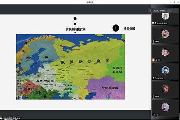 郭浩霆以时事热点俄乌冲突为切入点介绍俄罗斯的发展历史,通过横向与纵向的对比分析俄罗斯文明的特点,又讲述了俄罗斯与乌克兰的历史关系发展状况,使学员对俄乌冲突有了更为深刻的理解。他得出结论:唯有国家富强,人民方能安居乐业。