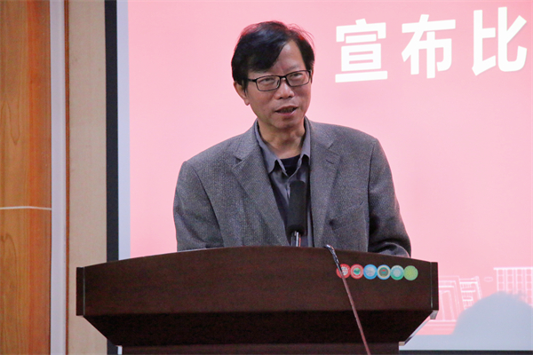 陈胜国发表讲话,他回顾了此次模拟法庭比赛的历程,向此次比赛的评委老师、指导老师以及组织比赛的法协学生干部表示感谢,并强调了模拟法庭这一比赛的重要地位与意义,即为学生提供了一个模拟法律实践的机会,让学生走出理论知识圈,在模拟的诉讼环境中增强实际运用能力。最后,陈胜国宣布决赛评审结果。