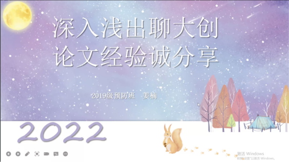 (通讯员 廖映 李雪 陈芷汀)4月8日晚,医学院团委青年创新创业指导中心于线上举办精勤讲堂之“深入浅出识大创,论文经验诚分享”主题讲座。讲座由2021级临床二班的吴心欣主持,主讲人为2019级预防班姜楠,医学院部分学生参与此次讲座。
