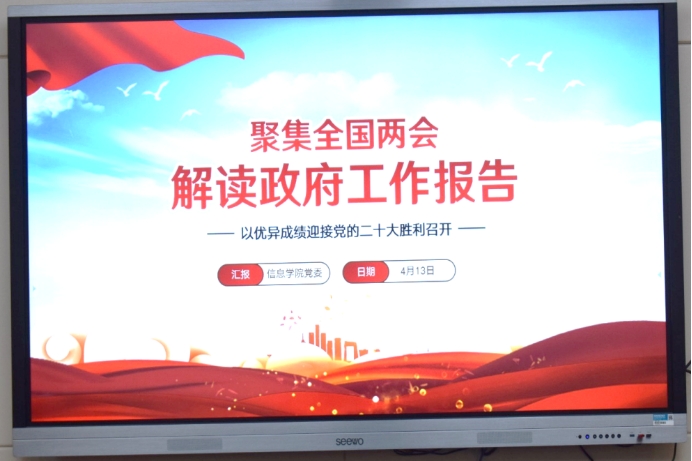 院党办曹巧稚老师首先作题为《聚集全国两会——解读政府工作报告》的专题报告。她紧密结合报告重要内容,依次从“2022年政府工作报告(要点)”、“政府工作报告92处修改”和“报告中关于教育内容修改的解读”三个板块展开深入解读。今年的全国两会是在党的第二十次全国代表大会召开前的一次重要会议,通过此次学习,大家把学习贯彻全国两会精神作为当前一项重要政治任务,切实把思想和行动统一到习近平总书记重要讲话精神和两会精神上来,深入领会政府工作报告中关于构建高等教育内涵式发展新格局的内容,发挥学科优势和特点,紧密围绕国家战略和湖南经济社会发展需求,胸怀大局,为学院博士点申报和”双一流“建设做出贡献。