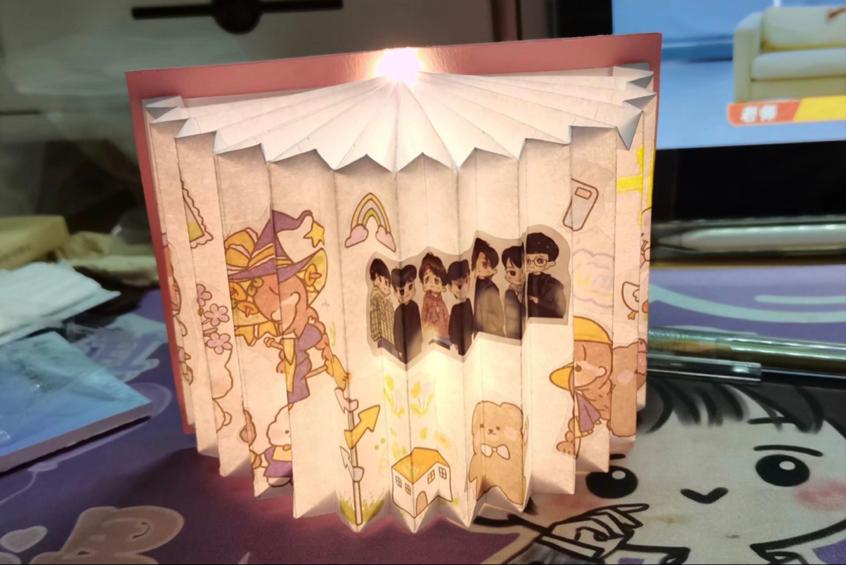 此次活动内容分为活动介绍、制作讲解、材料发放和线下创作四个部分。王妍通过视频和文字向会员展示了精美的书页灯的制作步骤,介绍了折纸的传统和意义,并安排各理事于不同时间段进行材料发放以应对目前的疫情情况。会员们领取完材料后,线下结合教程和个人想法进行书页灯的创作,并将做好的手工作品发布到QQ空间上。