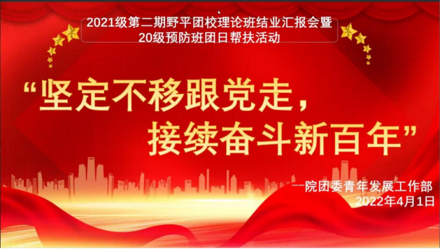 (通讯员 廖映 李雪 高阳)4月1日晚,医学院团委青年发展工作部于线上开展“坚定不移跟党走,接续奋斗新百年”为主题的野平团校结业汇报后暨20级预防班帮扶活动。院团委书记张明明、野平团校理论班成员、团委青年发展工作部成员参与此次活动,院团委青年发展工作部志愿者田恩情担任主持人。