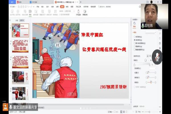 (通讯员 黄贤帅)为深入贯彻习近平总书记关于新冠肺炎疫情防控工作的重要指示和重要讲话精神,落实教育部及属地疫情防控指挥部决策部署,化学化工学院2018级、2019级、2020级以及2021级所有团支部认真落实学校通知,在3月22日开展“传承中国红,让青春闪耀在抗疫一线”主题班会。
