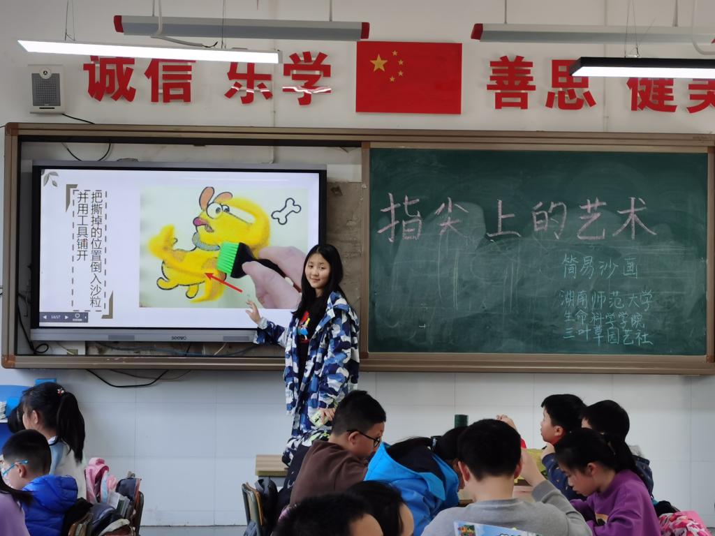 (通讯员 陈湘君 刘智慧)3月10日下午,生命科学学院三叶草园艺社区校共建志愿团队于岳麓区杜家塘小学五年级一、二班举办沙画教学活动。