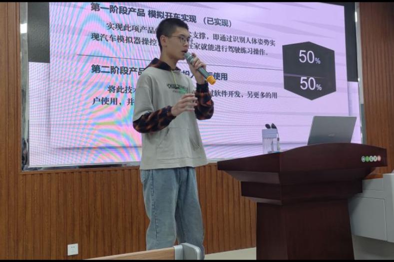 比赛采用演讲展示、评委点评、现场答辩的形式,7支队伍依次上台展示,从项目背景、产品介绍、团队成员、预期风险等方面进行阐述。其中,易驾队伍从人体姿势识别角度介绍仿真模拟驾驶技术,意在帮助更多的人拿到驾驶证;工程车辆监测与预警系统队伍从信息通信技术方面开展产品的设计,讲述产品的优点,且本项目来自三一集团的真实需求,有现实的用处;察燃观测队伍从生物质燃料方面介绍构建一套智能化的检测物联系统的前期准备,专业知识等。评委老师们给予本次院赛较高肯定,不仅队伍数量逐年上升,其项目质量也逐渐成熟,并希望同学们能借助双创比赛,结合专业,开拓思维,紧跟市场,完善项目,争取能取得更好成绩。
