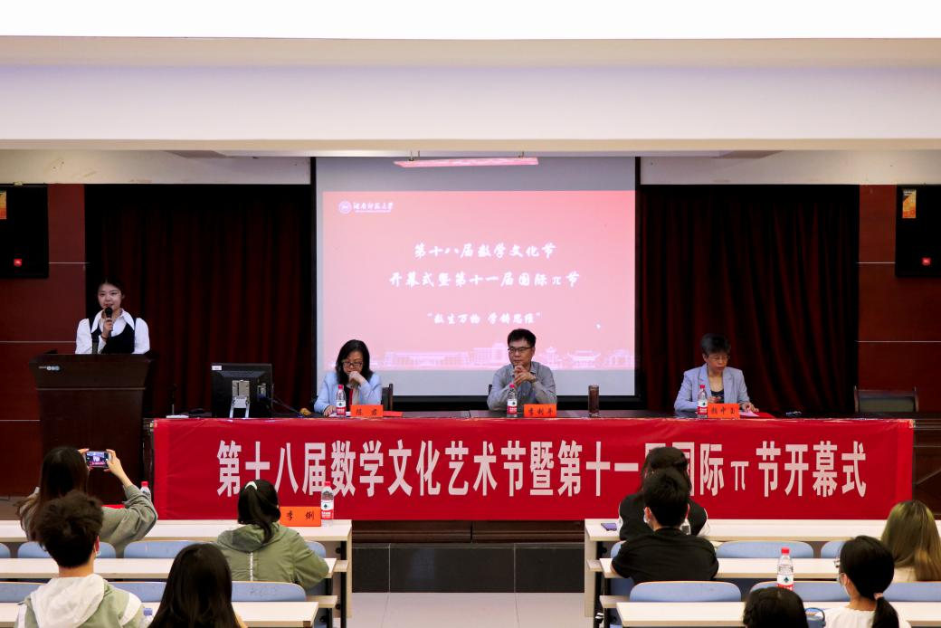 (通讯员 匡家慧 钱昱锦 郭校语)3月14日下午,数学与统计学院(以下简称“数统院”)第十八届数学文化节暨第十一届国际π节开幕式于格物楼309报告厅举办。此次活动以“数生万物,学铸思维”为主题。数统院院长李利平,院党委书记颜中玉,数统院副院长陈君,院学工办老师李俐、肖惠卿、周逸出席此次活动。