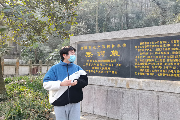 (通讯员 梁程炫 董小艳)为了更好地学习革命先辈的伟大精神,响应习近平总书记在纪念辛亥革命110周年大会上对新时代青年的呼吁,历史文化学院青马中心小组于12月9日下午前往岳麓山的蔡锷墓和黄兴墓开展了主题为“忆往昔峥嵘岁月,承先辈革命精神”的实地学习交流活动。此次活动由副组长柴超担任主讲人,全体青马中心小组成员参加。