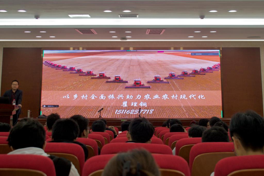 瞿理铜从习近平总书记概述乡村振兴战略实施的成果出发,分别从乡村振兴新发展阶段、新发展理念和新发展格局三个方面展开讲解。首先,他以中华民族入第二个一百年拐点为背景,提到全面推进乡村振兴是“三农”工作重心的历史性转移,展示了我国农业在效益提升、方式转绿、成果普惠方面取得的显著成就,并强调“三农”工作在内需方面依然面临严峻挑战。其次,他讲述了贯彻新发展理念需要把握的重心,以此推进农业高质高效、乡村宜居宜业和农民富裕富足。他以我国在经济方面取得成就的数据说明了我国具有一定的物质基础构建农村农业新发展格局,提出乡村振兴在脱贫攻坚中具有良好的巩固作用,并肯定了粮食安全、富民产业、硬件软件和乡村治理在脱贫攻坚中发挥的作用。最后他带领全体同学从发展理念、要素配置、发展动力等方面探究了我国在不均衡发展条件下的多元解决路径,并展示了我校在推动乡村教育振兴方面采取的措施和取得的战略性成果。