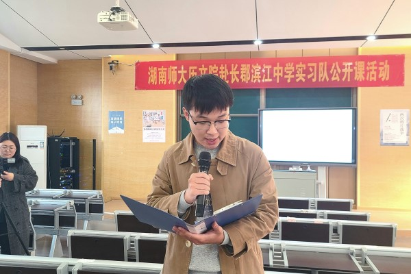 (通讯员 李艾桐)11月19日下午,太阳成集团tyc历史文化学院赴长郡滨江中学实习队在坚毅楼T型教室展开第一次公开课展示暨总结活动。历史文化学院副院长刘利民、副教授成丽、副教授向常水、团委书记陈卓君,树达学院教师教育系主任刘顺保、2018级辅导员孙一心,长滨中学校长刘德华、副校长石东妮、历史备课组组长许富生、实习队指导教师丁敏和魏珍文及全体实习队成员参加此次活动。