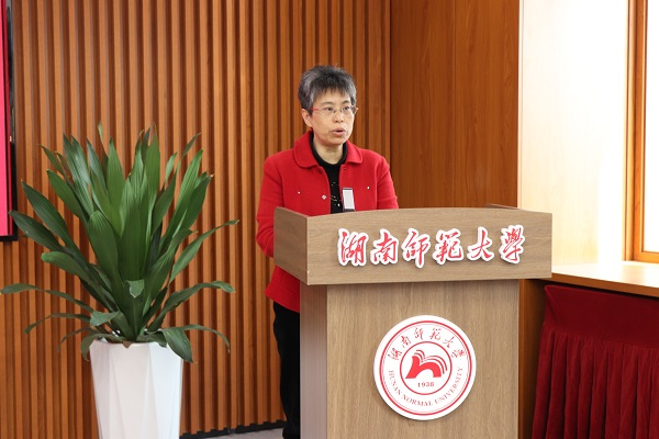 副校长谢资清教授致辞,她对学员的到来表示热烈欢迎,同时感谢湖南省教育厅和湖南省高师培训中心对此次研修班的大力支持。谢校长简单介绍了湖南师大的历史及师资科研实力。她表示,开展高级研修班培训有利于师资力量的培养与提升,希望学员通过参与此次高级研修班提升个人的教学与科研能力,进而增强全省各高校的数学研究水平。