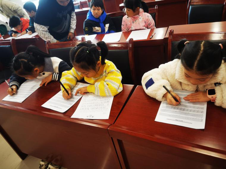 孩子们认真练习高音谱号书写