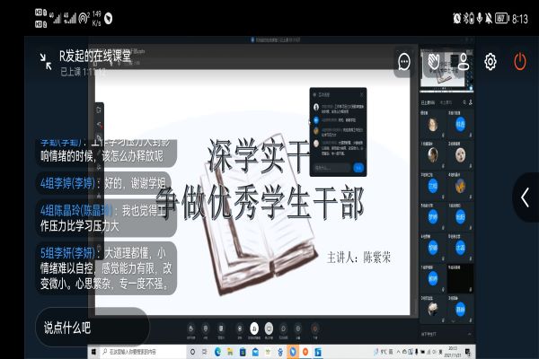 陈紫荣就学生干部在工作上可能遇到的问题提出一些自己的见解,并从三个方面阐述了如何做好一名学生干部。首先是要注意心境变化,成为学生干部之后,面对工作上的一些困难,感到压力或焦虑属于正常情况,最重要的是调整好自己的心态;其次是要深学实干,作为学生干部应做到学习工作两手抓。除此之外,她还分享了自己的一些学习方法,并强调,大家要注重时间管理,拒绝拖延,在工作与学习发生冲突的时候合理分配时间,平衡学习与工作的关系。