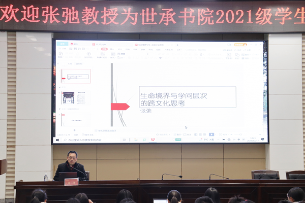 (通讯员 施绮幸 黄芷舟)12月17日,外国语学院教授、博士生导师张弛为世承书院2021级学生带来了题为“生命境界与学问层次的跨文化思考”的讲座。此次讲座在至善讲堂举行,由世承书院常务副院长高荣国主持。