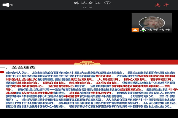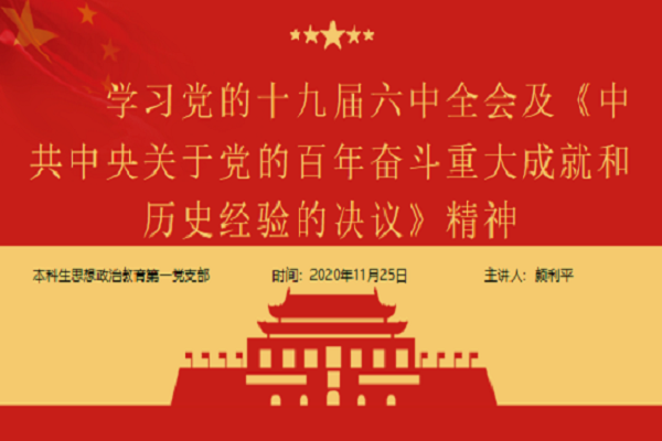 (通讯员 滕湘莹 史子悦)为学习贯彻党的十九届六中全会精神,深刻领会全会精神精髓要义,准确把握《中共中央关于党的百年奋斗重大成就和历史经验的决议》在推动党的建设伟大事业进程中的重大作用,将全会精神内化于心外化于行,1125下午,公共管理学院本科生思想政治教育第一党支部于线上开展主题为“学习党的十九届六中全会及《中共中央关于党的百年奋斗重大成就和历史经验的决议》精神”的党日活动。本科生思想政治教育第一党支部全体党员参与此次活动。