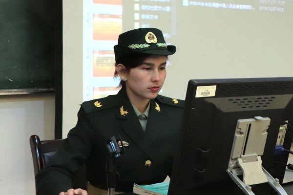 “国无防不立,民无兵不安”。在军事理论课上,姑丽讲解了武装力量的基本概念、作用,中国武装力量的整体构成、领导机制和中国武装力量的基本职能。中国武装军队主要由海军、陆军、空军、火箭军等多种兵种组成。在介绍中国武装部队各个军种的工作与职责时,姑丽通过播放视频来帮助同学们对中国武装力量有更加直观的感受。