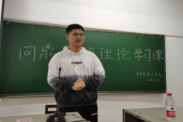 (通讯员 唐继彧)11月18日中午,化学化工学院第十二届“问鼎”团校第一期理论培训班理论学习第三课在化工楼117教室展开,此次课程主题为“大学不迷茫”。与会人员有18级学生欧阳佳奇、第十二届“问鼎”团校第一期理论培训班全体学员以及院团委青年发展工作部全体成员。