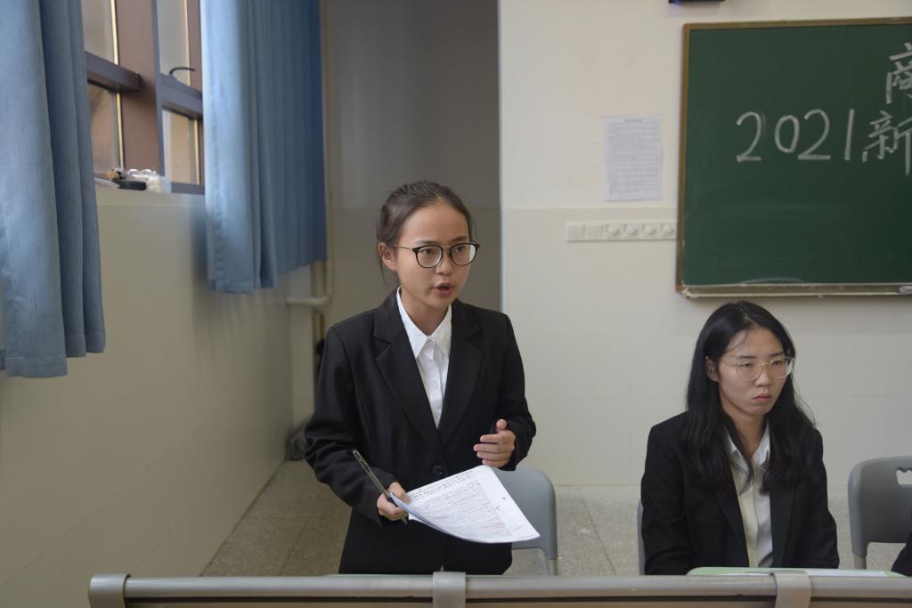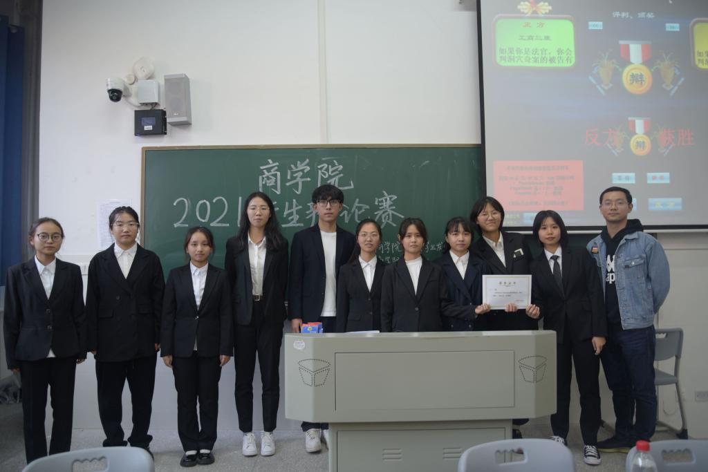 (通讯员 邓佳乐 谢孟洁 邬明佳)11月13日下午,商学院在中和楼114教室举办2021级新生辩论赛决赛,21级辅导员刘志勇出席此次比赛,新传院徐嘉钰、外院李思璇、法学院阙雨清、教科院夏萁、新传院陈文豪担任评委,商学院辩论队队长黄逸凡担任主持人。