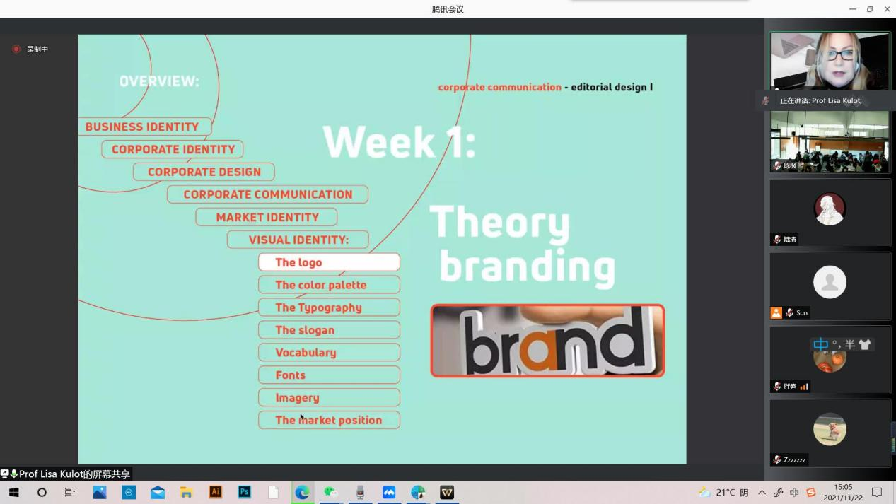 讲座中,莉莎•库洛特首先介绍了关于企业传播与编辑设计方面的框架结构知识,随后向师生们详细讲述了一个好的企业文化设计由哪些要素组成,并且介绍了很多知名企业成功的logo设计和品牌形象设计的案例。此外,她也从企业传播与编辑设计方面教学的角度介绍了设计品牌形象及企业logo(标志)的大致的方法步骤。
