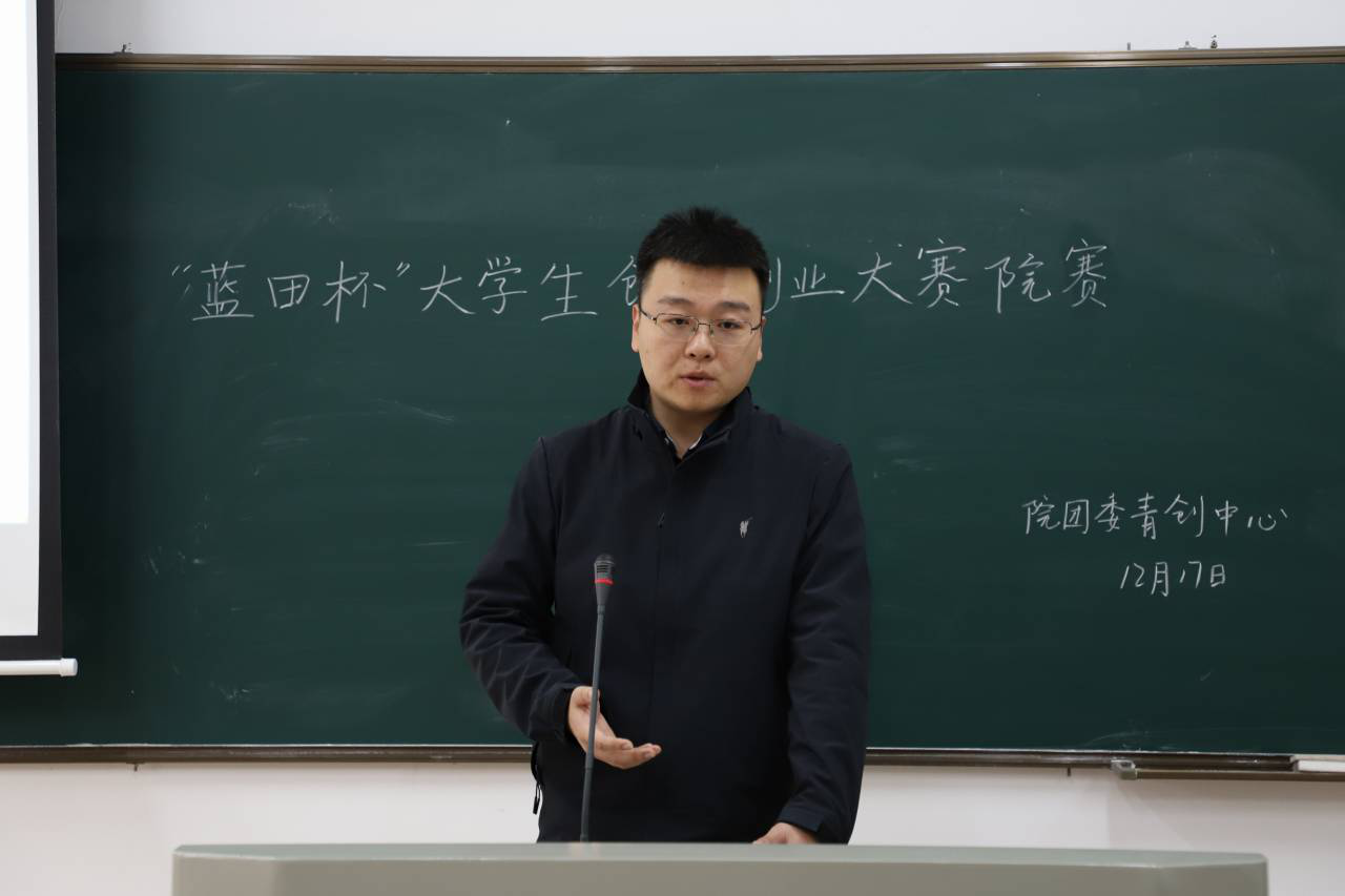 (通讯员 刘思桐 乔玥頔 陈嘉妮) 12月17日中午,生命科学学院团委青年创新创业指导中心于生科院3号楼B108教室举办“蓝田杯”大学生创新创业大赛院赛。生科院团委书记兼2020级辅导员赵志浩、2018级辅导员王洋出席此次活动。院团委青创中心干事张晰然担任此次比赛的主持人。