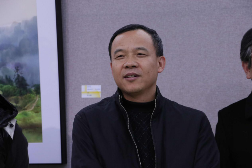 湖南师范大美术学院院长李少波发言。他提到美术学院立足60余年的办学历史,坚持“大美术”“开放式”的办学思路,采取“内引”“外培”相结合的师资建设模式,快速地优化了学缘结构,提升了教师队伍的创作水平。一个学院的教师作品展就是展现这个学院教师实力创作水平的机会,对于同学们来讲也是一个学习观摩的机会。他因为疫情影响外教资源和在外考察的教师遗憾地未能参加此处展览感到十分遗憾,希望美术学院教师作品双年展能越办越好。