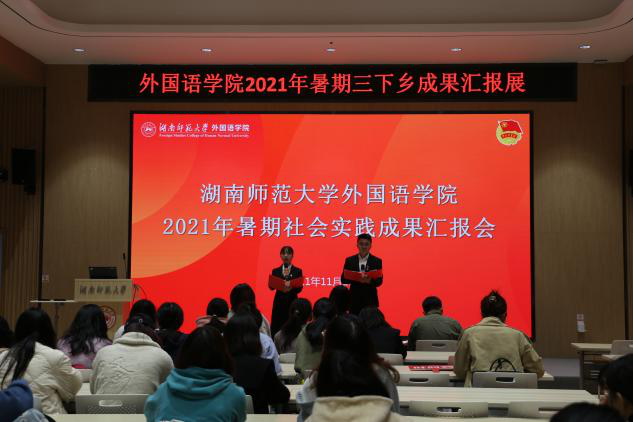 (通讯员 杨洋 朱楠宜) 11月17日晚,外国语学院于腾龙楼613多功能报告厅举行2021年暑期社会实践成果汇报会,并通过Bilibili网站实现同步直播。外院学工办老师姚雯,王耀光,舒怡出席活动。此次汇报会由陈沙君、纪凌浩主持。