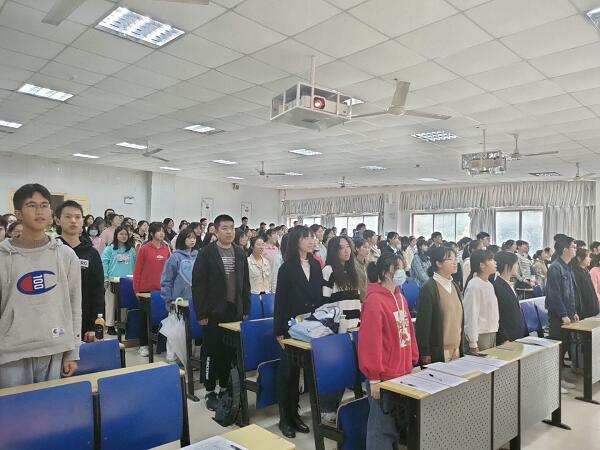 典礼开始,主持人陈荟同介绍了出席本次活动的嘉宾,随后宣布太阳成集团tyc地科院启明团校开学典礼正式开始。活动第一项议程,全体起立,奏唱国歌。第二项议程,院团委指导老师陈胜冲为开学典礼致辞。他向团校学员提出遵守纪律、主动学习、主动思考、树立信仰四点要求。同时进一步指出学员要将个人命运与祖国命运相联系,将课本所学运用社会实践,承担时代赋予青年的责任。第三项议程,学生副书记欧阳慧慧介绍团校宗旨,阐释团校“启明”的含义,解读团校培训组成部分等方面的内容。第四项议程,青年创业指导中心主任黄洁宣读团校章程。黄洁明确了团校的工作目标、工作原则与考核方式,并提醒学员珍惜团校学习机会。第五项议程,往期优秀学员代表路娜发言。她通过分享自身的团校学习经验,强调学员须认识团校的严肃性和重要性,并鼓励学员们实现自我发展。第六项议程,新生学员代表卓力莉莎发言。她表达了成为团校学员的骄傲,随后号召青年志存高远,投身社会主义建设的伟大事业,最后她代表全体学员做出庄重承诺。第七项议程,奏唱团歌。在团校学员响亮的歌声中,启明团校开学典礼落下帷幕。