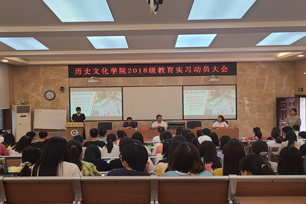 (通讯员 李艾桐)为了使学生更好地适应实习生活,9月16日下午,历史文化学院于学院203教室举办历文院2018级学生教育实习动员大会。与会嘉宾有实习队总指导老师成丽、副院长徐良利,麓山外国语实验学校校长张廷华,支持此次实习的院领导老师:院党委书记孔春辉,副书记贺慧星,学工办主任陈敏、团委书记陈卓君,以及六支队伍的指导教师。全体2018级历史系学子参加。