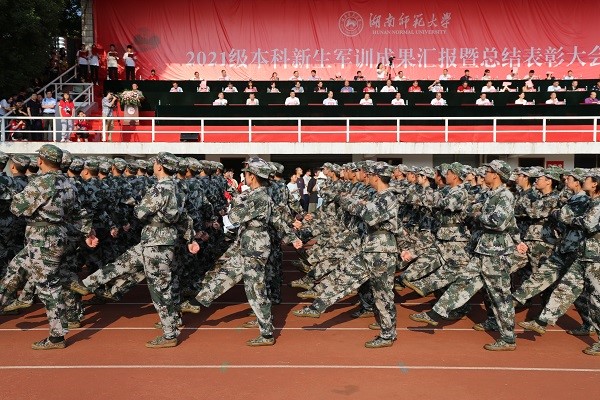 (通讯员 陈星羽 陶惠茹 刘毅)10月3上午,我校2021级本科新生军训成果汇报暨总结表彰大会在校本部田径场举行。
