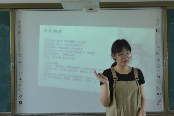 此次课程主要分为对联的基本知识和对联的拟写方法两部分。单妮为同学们介绍了对联的历史发展和基本特点,并通过著名对联的举例重点讲解了对联的词类相同和平仄相对的特点。在进行课堂练习时,同学们根据提供的上联对出相应的下联,巩固学习成果。