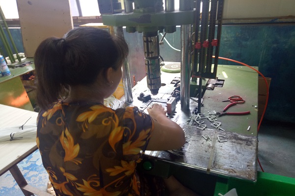 鑫航标电子厂负责人伍万贞接待实践团成员并对车间进行简要介绍,该厂是深圳总公司在湖南设立的分公司,采用深圳总厂接单,湖南分厂生产的模式。参观过程中,伍万忠向实践团成员介绍了车间的一名残疾员工,他指出目前车间共吸纳十余名贫困户和数名残疾人士就业,为解决当地人口就业问题做出贡献。
