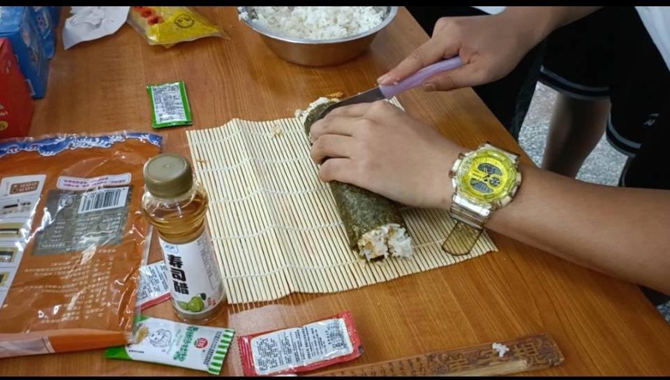 同学们动手切寿司