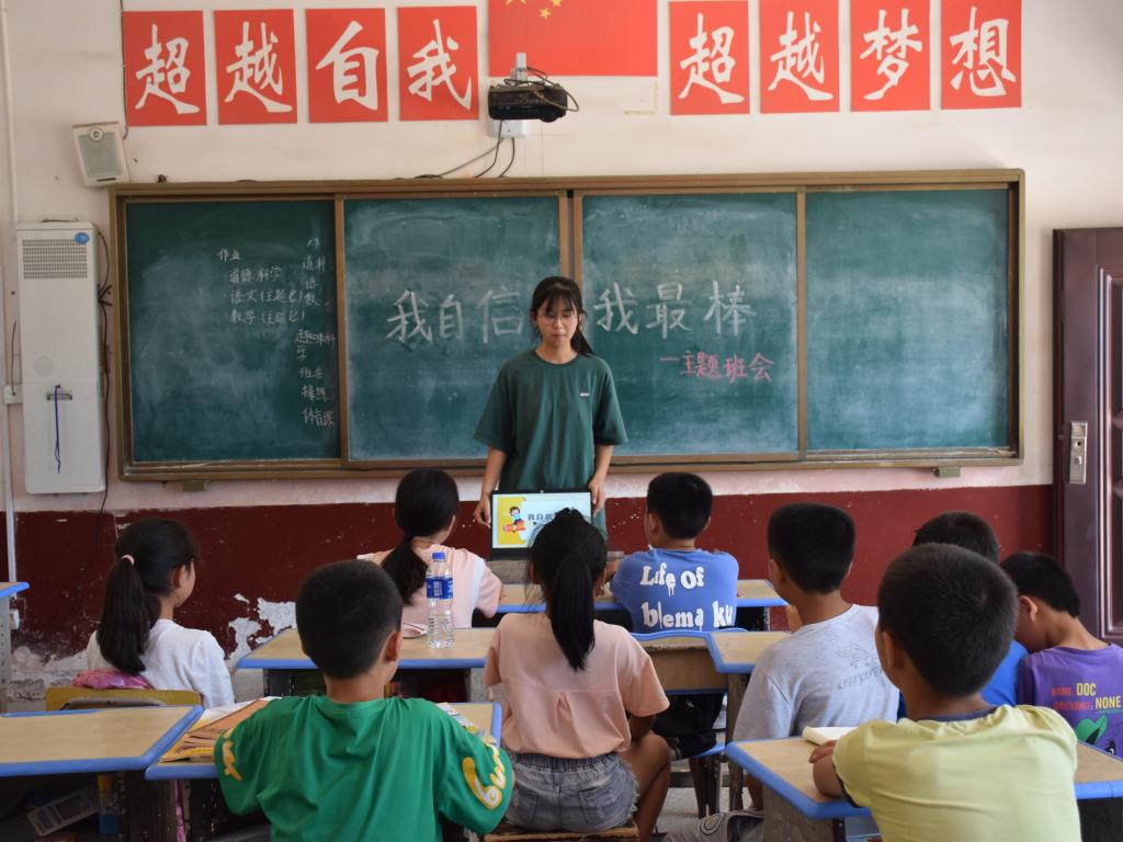 (通讯员 吴亚丽 邢虹静 刘畅)7月12日下午,为引导学生的心理向健康的方向发展,我校教科院赴益阳市七家村暑期社会实践团于七家村完全小学四年级教室开展“我自信,我最棒”主题班会,此次班会由实践团成员李秋君负责。