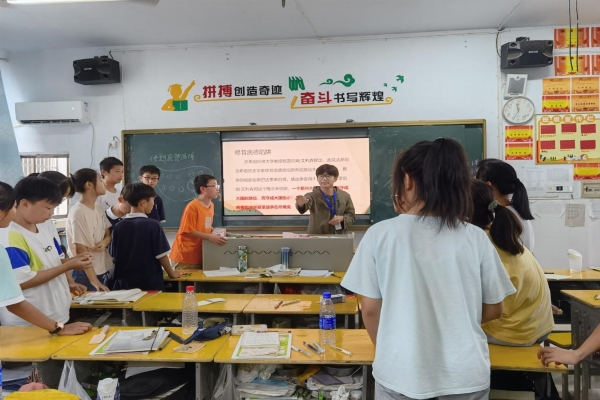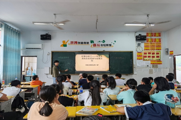 (通讯员 熊瑶 袁芳 曾利伟)为拓展学生视野、提高学生时政解读能力,加强学生的思辨能力,我校马克思主义学院关爱在行动支教队于7月15日开展了时事分析特色课程。此次课程由支教队队员张稼轩授课,授课对象为青烟中学预初二(1)班的学生。