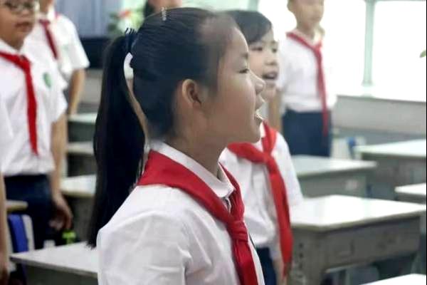 学生齐唱《少年先锋队队歌》