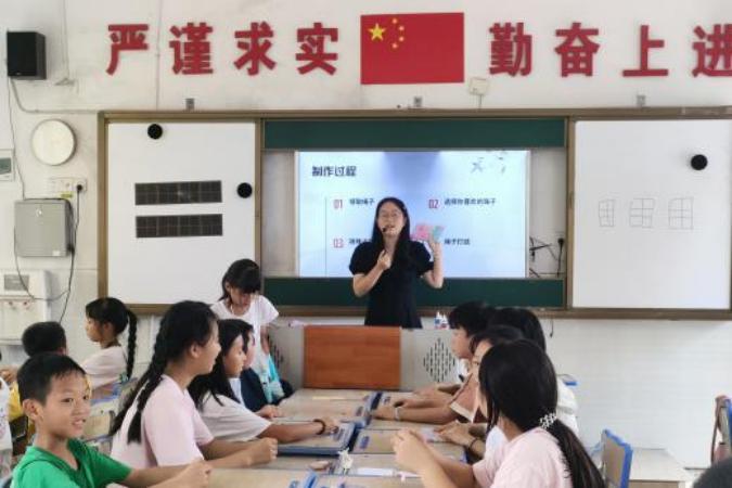 (通讯员 宁玲惠 赵曼 刘智慧)7月21日下午,生命科学学院三叶草园艺社暑期实践团在白露塘小学开展趣味手工课。修竹班由刘美琦授课,傲梅班由李仙妮授课,雅兰班由陈雅慧授课。