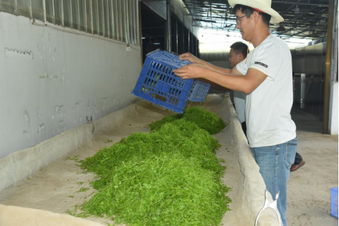 莓茶基地总负责人亲自示范挑选莓茶鲜叶