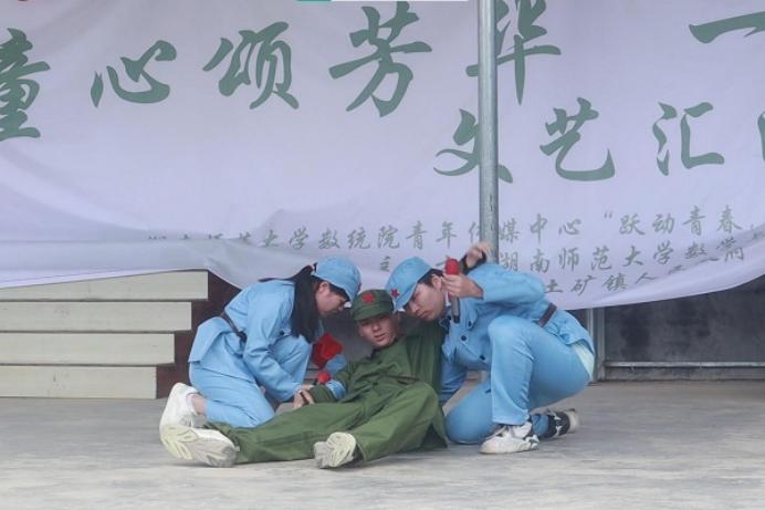 实践团成员表演舞台剧《等待与坚守》