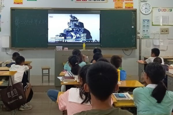 刘扬宇正在播放第二次世界大战中“七七事变”的视频
