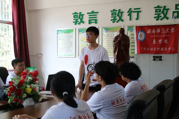 饭后,同学们在会议室召开了一个简短的会议。会议上,队长文梦瑶重点强调了安全问题,强调不要下河游泳、注意避暑等。支教组组长邓添引汇报了之后两周的教学安排,队员们也都踊跃发表自己的意见。