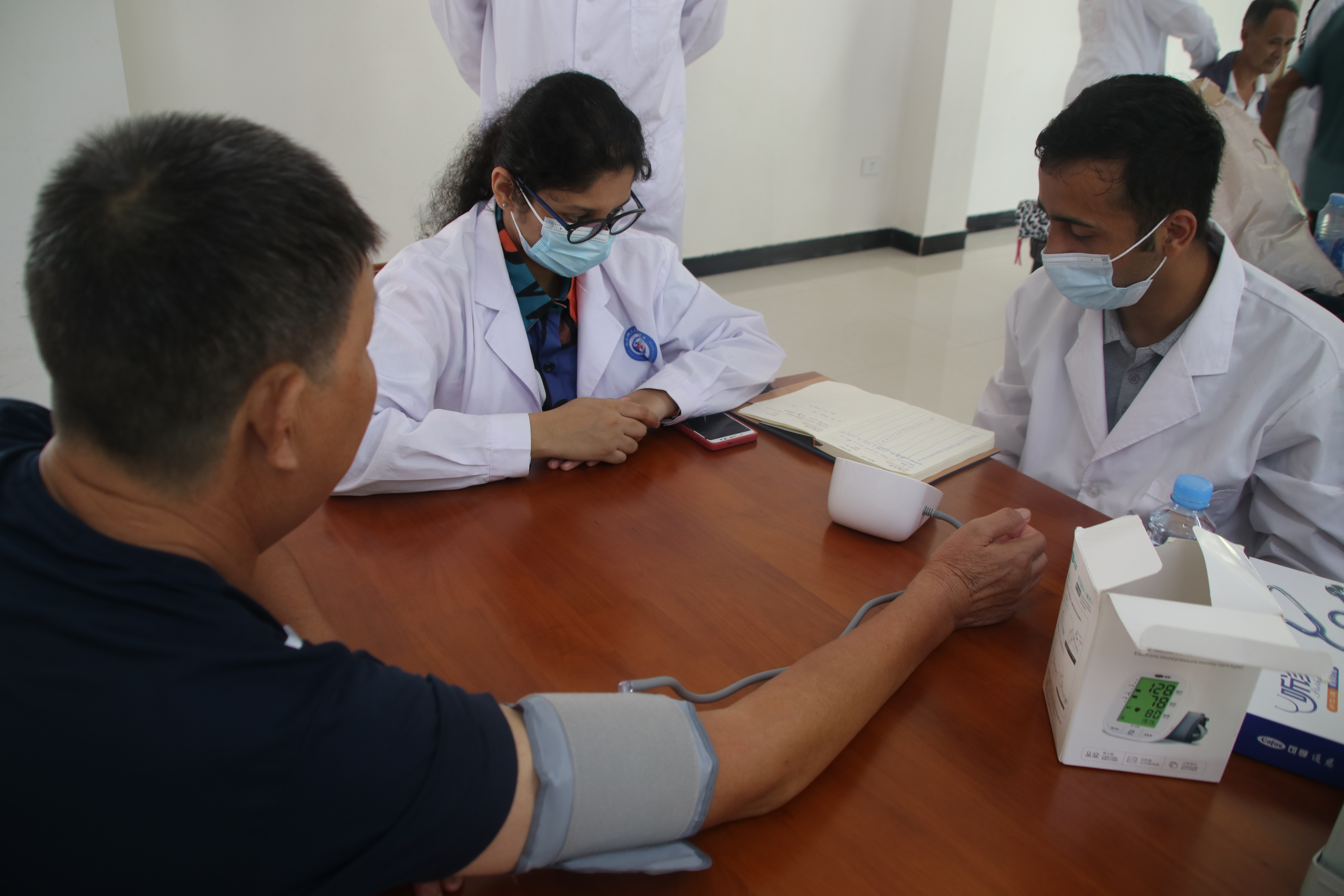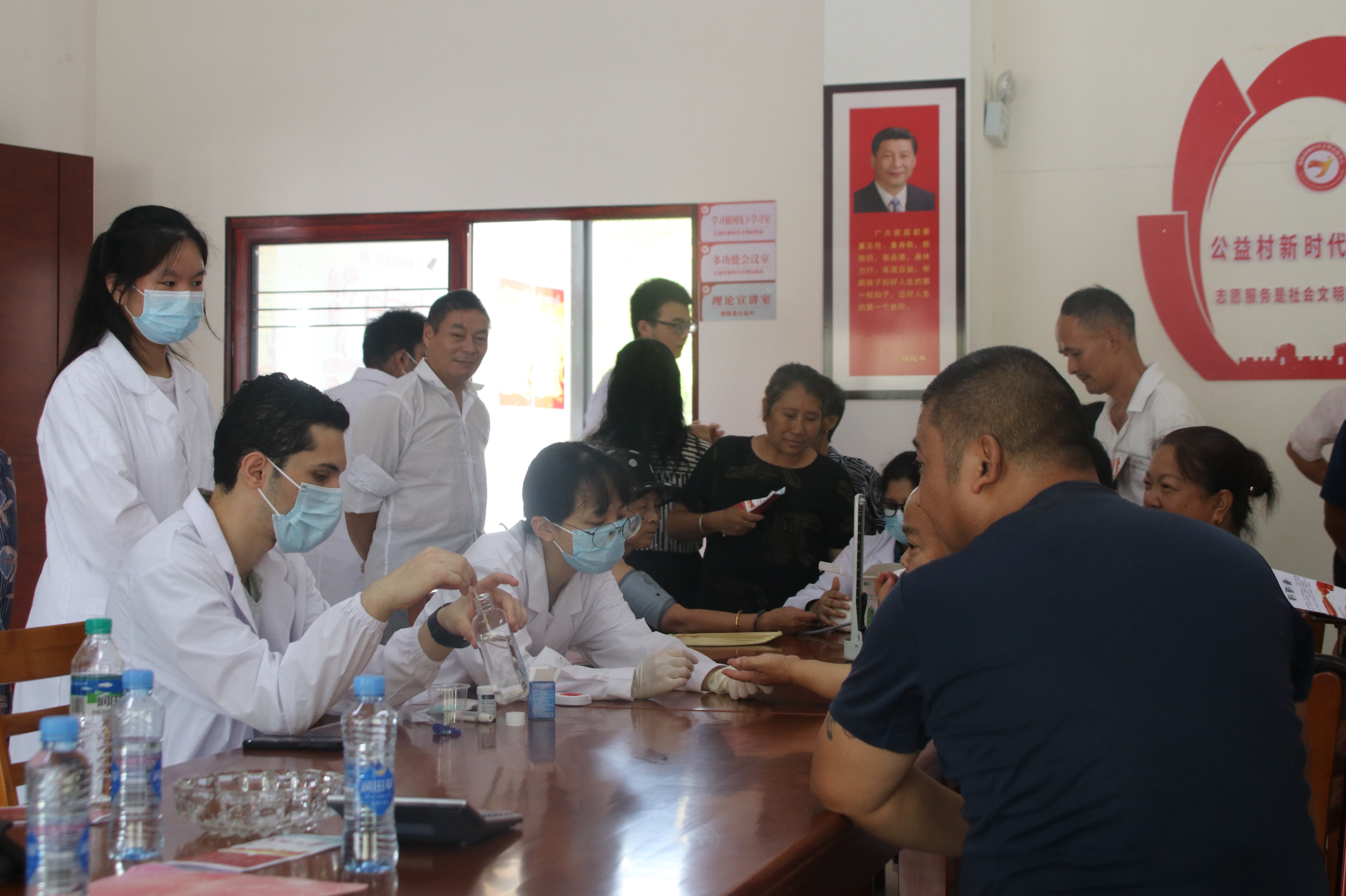 谢乐静组织带领实践团中外成员对有需要的居民进行血糖、血压的测量以及推拿服务。朱鑫平专门指导来自印度的留学生宋佳和来自赞比亚的留学生马露对居民开展的血压测量,他们通过问答的形式基本掌握村民身体状况并为其测量;谢乐静和赵珂洁带领来自叙利亚的袁赞同学进行了血糖测量,帮助村民知晓当前血糖水平并且给予其相关医学建议;文圣杰和陈思瑜与来自也门的马里克同学共同开展了推拿服务,帮助居民疏通经络、调整筋骨。