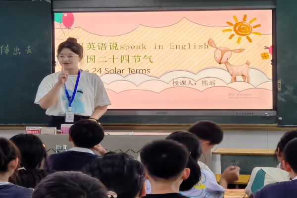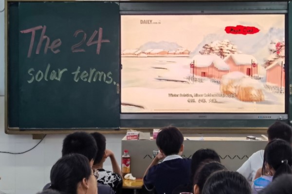熊瑶授课方式新颖,主要采取中英结合的形式引领同学们深入认识二十四节气,课堂上,熊瑶引入中国日报网中讲述二十四节气的视频,对此同学们表现出强烈兴趣,熊瑶指出,春分、夏至、秋分、冬至是二十四节气中重要的四个时间节点,二十四节气可分为四类,分别用来反映四季、气温、天气现象以及气温的变化,其中,同学们对“惊蛰”“芒种”这类和农事活动有关的节气兴趣较高。熊瑶强调,此次课程的重点是想让同学们学会二十四节气的英文表达,她深入浅出地解释了各个节气,让同学们在此次课堂中不仅学会了各个节气的英文表达,还了解了各个节气对应的物候变化。